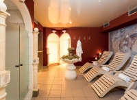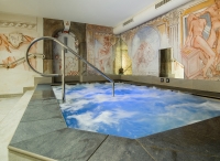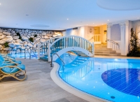 bazén nepravidelného tvaru 17 x 6 m s umělým vodopádem, vířivka až pro 12 osob, 2x sauna#, pára#, infrakabina#, 2x relaxační koutek# s lehátky, Kneippův chodník#, masáže#*, posilovna; služby označené # mohou využívat jen osoby od 18 let