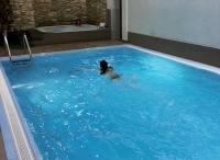 bazén 8 x 4 m s vířivkou až pro 6 osob, sauna*, horizontální solárium*, relaxační koutek* s lehátky, masáže*, biliár*, stolní fotbal*