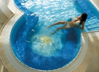 bazén 75 m², venkovní minibazén 6 x 4 m s vířivkou až pro 8 osob, sauna#, pára#, multifunkční sprcha#, relaxační koutek se zavěšenými proutěnými houpacími křesly, masáže*, kosmetické služby*, malá posilovna; služby označené # mohou využívat jen osoby od 16 let; v rámci relaxačního centra jsou zdarma nabízeny též ručníky a osušky