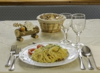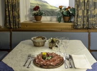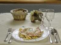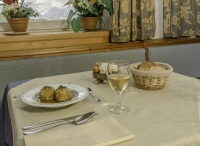 servírované menu s výběrem ze 2 teplých předkrmů, 1 hlavní jídlo s přílohou, servírovaný dezert, nápoje za poplatek