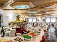 servírované menu s výběrem ze 3 až 4 teplých předkrmů a 3 až 4 hlavních jídel se 2 přílohami, studené předkrmy, saláty, dezerty, ovoce a sýry formou bufetu, nápoje za poplatek; 1x týdně typicky místní večeře