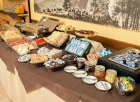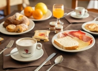 servírované menu s výběrem ze 3 studených či teplých předkrmů a 3 hlavních jídel s přílohou, salátový bufet, dezert či ovoce, nápoje za poplatek