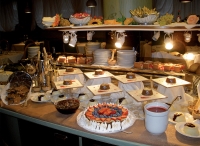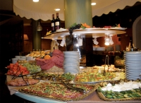 formou bufetu studených a teplých předkrmů, hlavních jídel, příloh, salátů, dezertů a ovoce, nápoje za poplatek