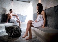 bazén nepravidelného tvaru, malý dětský bazén, vířivka, sauna#, bio sauna#, sauna# ze solných krystalů, pára#, infrakabina#, solná jeskyně, horizontální solárium#*, relaxační koutek s lehátky, Kneippův chodník#, senná lázeň#, masáže#*, kosmetické služby#*; služby označené # mohou využívat děti až od 16 let; v rámci relaxačního centra jsou zdarma nabízeny též bylinkové čaje