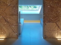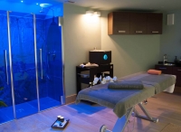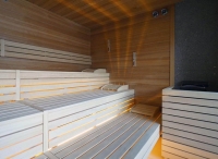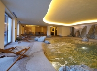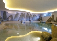bazén atypického tvaru se slanou vodou a vířivkou*, sauna*, pára*, relaxační koutek s lehátky*, posilovna, masáže*, kosmetické služby*