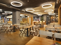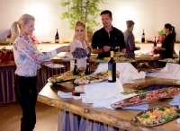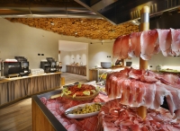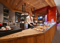 výběr ze 2 až 3 teplých předkrmů, 2 až 3 hlavních jídel, studené předkrmy formou bufetu, salátový bufet, dezert či ovoce, nápoje za poplatek
