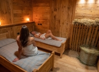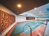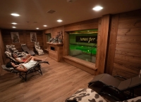 bazén 14 x 5 m, vířivka až pro 6 osob, finská sauna#, biosauna#, aromatická pára#, bazén s ledovou vodou#, multifunkční sprcha#, horské sluníčko#*, relaxační koutek s lehátky a bylinkovými čaji, masáže#*, kosmetické služby#*, posilovna#, stolní fotbal; služby označené#nemohou využívat děti do 14 let