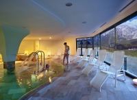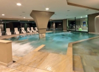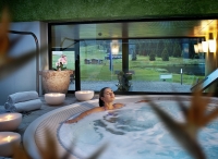 bazén s umělým vodopádem a lehátky, vířivka, finská sauna, aromatická biosauna, pára, ledová lázeň, multifunkční sprcha, relaxační koutek s lehátky a panoramatickým výhledem, masáže*, kosmetické služby*, stolní tenis, stolní fotbal*