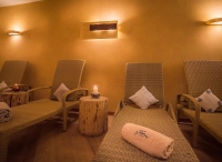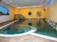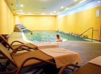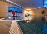 bazén atypického tvaru cca 40 m² s vířivkou až pro 6 osob, umělým vodopádem a lehátky, finská sauna#, aromatická biosauna#, aromatická pára#, ledová lázeň#, hydromasážní sprcha#, multifunkční sprcha#, vertikální solárium#*, relaxační koutek# s lehátky a hudbou, masáže#*, kosmetické služby*, stolní fotbal*; služby označené # nemohou využívat děti do 14 let; v rámci relaxačního centra jsou zdarma nabízeny též ručníky, osušky, voda a bylinkové čaje