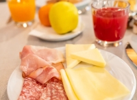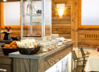 formou bufetu výběrem ze 2 teplých předkrmů, 3 hlavních jídel, studených předkrmů a salátů, dezert; nápoje za poplatek