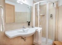 TV sat., telefon, fén, minibar, wi-fi připojení k internetu, osušky* a župany* do wellness