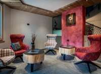 recepce, menší lobby, úschovna lyží a lyžařských bot, garážové stání, parkovací stání