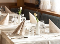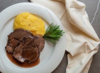 servírované menu s výběrem ze 2 až 3 teplých předkrmů, 2 až 3 hlavních jídel s přílohou, servírovaný dezert, nápoje za poplatek
