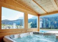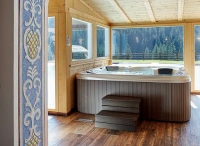 vířivka* až pro 8 osob, 2x vířivka shiatsu#* pro 1 osobu, finská sauna#*, venkovní sibiřská sauna s ledovou ochlazovací stezkou#*, pára#*, hydromasážní sprcha#*, relaxační koutek#* s lehátky, malá posilovna#*, kosmetické služby či masáže*; služby označené # mohou využívat jen osoby od 16 let