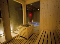 vířivka* až pro 6 osob, sauna*, pára*, 2x multifunkční sprcha*, relaxační koutek* s lehátky, masáže*, kosmetické služby*