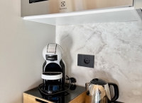 TV smart (2x u typologie bilo a trilo), fén, mikrovlnná trouba, kávovar, rychlovarná konvice, wi-fi připojení k internetu, chyytrá domácnost, Alexa