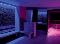vířivka#*, finská sauna#*, pára#*, multifunkční sprcha#*, solná jeskyně#*, masáže*, kosmetické služby*, malá posilovna (3 stroje); služby označené # mohou využívat jen osoby od 14 let; cena wellness 15€ /osoba /vstup