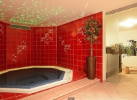 vířivka* až pro 8 osob, sauna*, pára*, relaxační koutek s lehátky*, menší posilovna*, 2x squashové kurty*