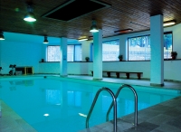 bazén 12 x 6 m s lehátky a 3 posilovacími stroji, vířivka# až pro 6 osob, sauna#, pára#, atypická ledová lázeň#, 2x multifunkční sprcha#, relaxační koutek s lehátky#, stolní fotbal*; služby označené # nemohou využívat děti do 13 let