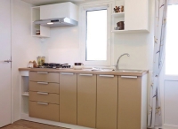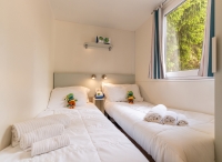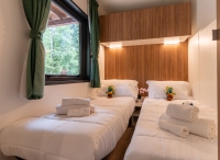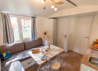 jedná se o samostatně vytápěné a zateplené mobilhomy, každý se svým vlastním sociálním zařízením; mobilhomy jsou rozmístěny v blízkosti centrální budovy kempu, kde se pak nachází i níže vypsané zázemí