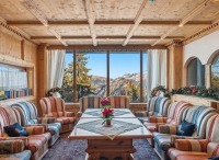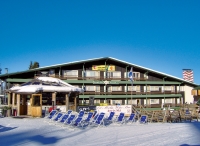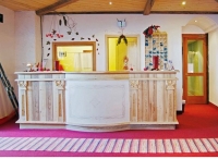 recepce / menší lobby s krbem / bar, restaurace / pizzerie self servis na svahu jen na obědy, restaurace, venkovní apres ski bar u sjezdovky se sluneční terasou a lehátky, společenská místnost s TV sat., menší sluneční terasa s lehátky, dětský koutek, hotelový trezor