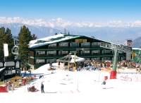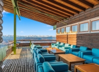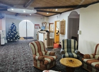 recepce / menší lobby s krbem / bar, restaurace / pizzerie self servis na svahu jen na obědy, restaurace, venkovní après ski bar u sjezdovky se sluneční terasou a lehátky, společenská místnost s TV sat., menší sluneční terasa s lehátky, dětský koutek, hotelový trezor