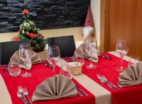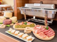 studené i teplé předkrmy formou bufetu, servírované menu s výběrem z 1 teplého předkrmu nebo 1 hlavního jídla s přílohou, nápoje za poplatek