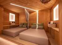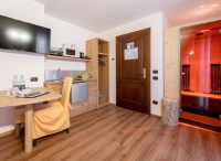 venkovní vířivka pro 4 osoby*#, vířivka* s relaxačním koutem*# (na objednávku), sauna*#, venkovní sauna*#, pára*#, 2x multifunkční sprcha*#, venkovní relaxační koutek*# s lehátky, masáže*#, kosmetické služby*#; služby označené # nemohou využívat děti do 15 let; v rámci relaxačního centra jsou zdarma nabízeny též bylinkové čaje