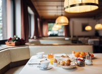 servírované menu s výběrem ze 2 až 3 teplých předkrmů a 2 až 3 hlavních jídel s přílohou, servírovaný dezert, salátový bufet, nápoje za poplatek