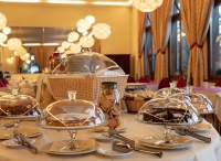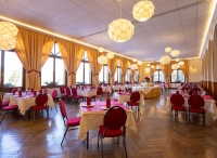 servírované menu s výběrem ze 2 teplých předkrmů, 2 hlavních jídel s přílohou a 2 až 3 dezertů / ovoce, bohatý salátový bufet, nápoje za poplatek