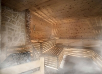 venkovní vyhřívaný bazén s vířivkou a bazén kulatého tvaru s vířivkou (celkem 100 m²), dětský bazének se skluzavkou, finská sauna#, biosauna#, pára#, Knejppův chodník#, 3x relaxační koutek# s lehátky, posilovna# , masáže*# ,kosmetické služby*#, stolní tenis, stolní fotbal, služby označené # mohou využívat jen osoby od 18 let