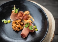 servírované menu s výběrem ze 2 až 3 teplých předkrmů a 2 až 3 hlavních jídel s přílohou, salátový bufet, servírovaný dezert či ovoce, nápoje za poplatek; nepravidelné tematické večeře