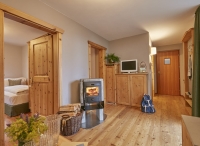 TV sat., telefon, fén, trezor, wi-fi připojení k internetu, minibar, jablka z oblasti Vinschgau, rychlovarná konvice, termofory, malá krbová kamna na dřevo, psací stůl, župany a pantofle do wellness, kosmetika Glacisse