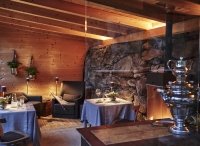 servírované menu s možností výběru studených předkrmů, teplých předkrmů, hlavních chodů a dezertů, domácí pečivo a máslo, minerální voda v ceně, ostatní nápoje za poplatek