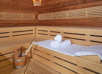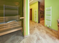 finská sauna, bio sauna, relaxační koutek a terasa s lehátky