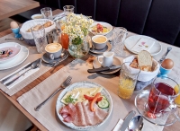 na polopenzi je třeba docházet do hotelové restaurace "Weinstube" vzdálené cca 200 metrů od budovy hotelu s pokoji a dalším zázemím