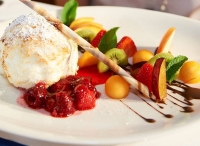 servírované 3chodové menu s výběrem z několika hlavních jídel s přílohou, servírovaný předkrm či polévka a dezert, nápoje za poplatek