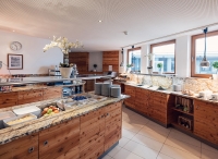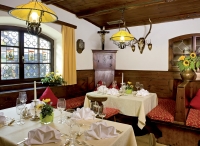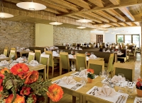 servírované 3chodové menu s výběrem hlavního jídla s přílohou, předkrm či polévka, saláty a zpravidla dezert formou bufetu, nápoje za poplatek; 1x týdně tematický farmářský tyrolský bufet