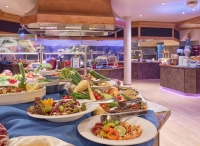 formou bufetu s výběrem hlavních jídel s přílohou, studených a teplých předkrmů, polévek, salátů, sýrů a dezertů, nealko nápoje, pivo a víno i lahvové, ostatní nápoje za poplatek; live cooking show; povinný společenský dresscode (pánové dlouhé kalhoty a plné boty a dámy společenské šaty a obuv)