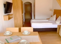 TV sat., fén, mikrovlnka, rychlovarná konvice, kávovar, wi-fi připojení k internetu, župany* na vyžádání na recepci