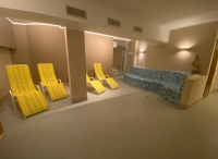 vířivka, sauna, turecká pára, horizontální solárium*, relaxační koutek s lehátky
