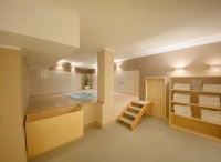 vířivka, sauna, turecká pára, horizontální solárium*, relaxační koutek s lehátky