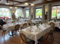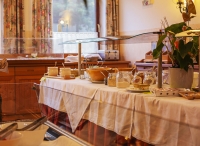 formou servírovaného 5chodového menu s výběrem hlavních jídel s přílohou; polévka, saláty a dezert zpravidla formou bufetu, nápoje za poplatek