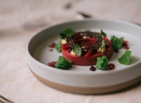 servírované 5chodové menu s výběrem hlavních jídel s přílohou, servírovaný předkrm či polévka, salátový bufet, servírovaný dezert, nápoje za poplatek; 1x týdně předkrmy a dezerty formou bufetu; 1x týdně tématické večeře